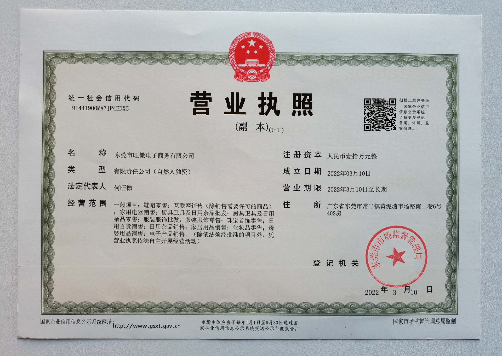 Corporate name:Dongguan Wangxi E-commerce Co., Ltd
